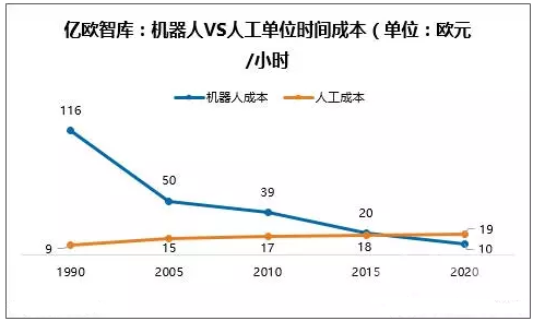近年来,机器人领域的创业一直保持着相当的热度,即使在全球创投市场收紧的状况下,机器人初创企业还能拿到不错的融资,表明投资者对机器人应用前景的普遍看好。2010年以来,机器人行业(包括无人机)的投资额增长了4倍多,2014年几乎达到5.7亿美元。其中,值得一提的是谷歌在2012-2014年间连续进行的8起收购。许多初创企业(如Rethink、Fetch等)先后开发出低成本机器人物流解决方案,预计至2020年,大量机器人物流解决方案成本将降至10万欧元以下。据罗兰贝格的研究数据表明,1990-2005年,工业机器人的价格降低了一半;2010-2015年期间价格再次折半。2015年,最便宜的机器人物流解决方案(Unbounded Robotics UBR-1)约为2万欧元。另一方面,全球的人工成本呈逐渐上升趋势,原来在中国的制造厂商正在向人工成本更低的东南亚等地搬迁。在人工成本最高的欧洲,机器人在物流行业的普及更是成了一个明显趋势。长期看来,随着机器人技术的成熟,机器人生产效率的提高、寿命的延长,机器人成本的下降和人工成本的提高将共同促进机器人在物流行业的普及。